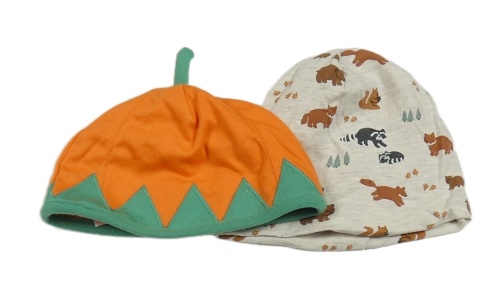 2x bavlněná čepice - oranžová - dýně + světlešedá melírovaná so zvířaty
