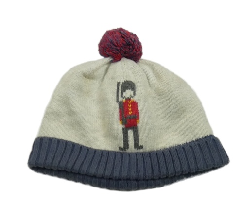 Sivo-modrá pletená čapica s vojáčkem a brmbolcom