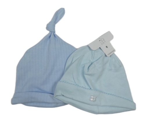 2x světlemodrá bavlněná čepice - žebrovaná + s výšivkou