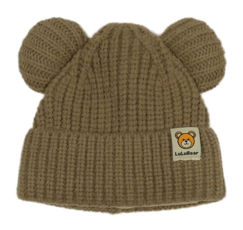 Hnědobéžová rebrovaná pletená čapica s medvedíkom a uškami