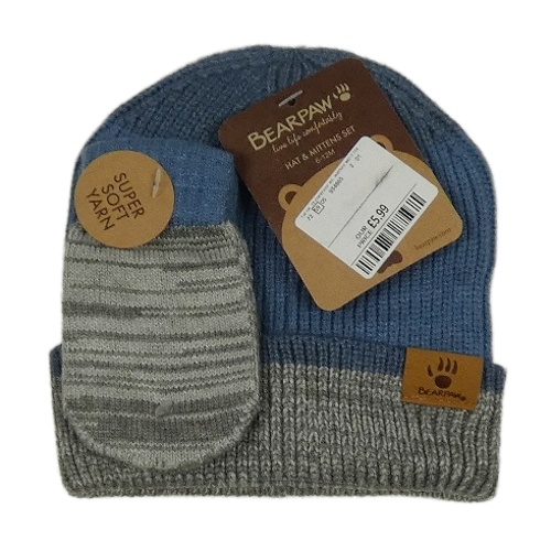 Nové - 2set - Modro-šedá žebrovaná pletená čepice + rukavice