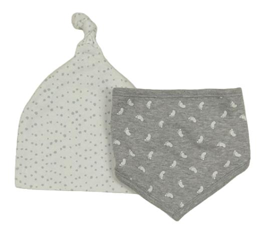 2set - Bílá puntíkatá bavlněná čepice + šedý melírovaný slinták s chodidly