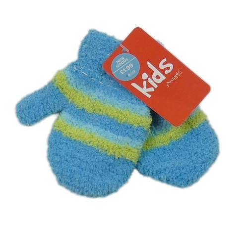 Nové - Modro-limetkové chlupaté palcové rukavice s pruhmi
