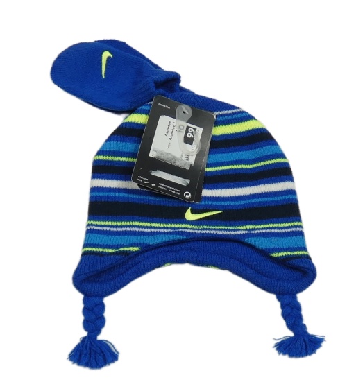Nové - Modro-barevná pruhovaná pletená ušanka + rukavice Nike