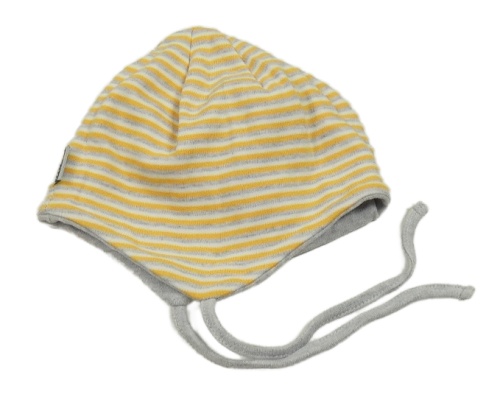 Hořčicovo-sivo-biela pruhovaná zavazovací čapica JAKO-O