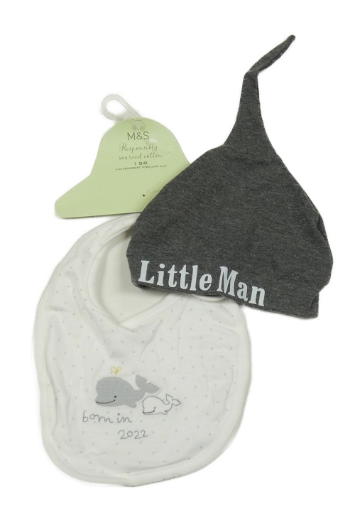 2set - Tmavosivá melírovaná bavlnená čapica s nápisem + bílý puntíkatý slinták s velrybami