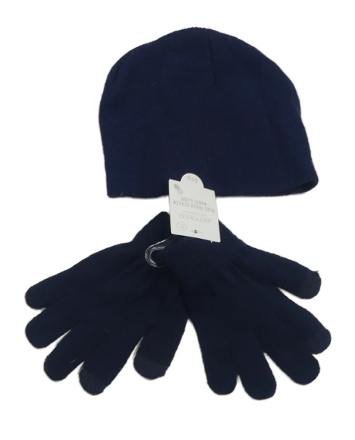 Nové - 2 set - tmavomodrá pletená čepice + tmavomodré prstové rukavice