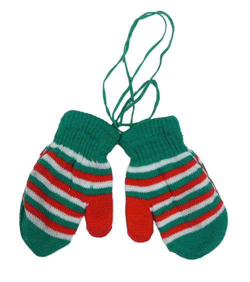 Zeleno-bílo-červené pruhované palcové rukavice na provázku