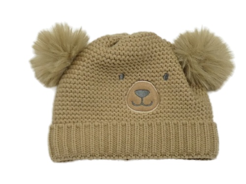 Béžová pletená podšitá čapica s ňufáčikom a bambulemi F&F