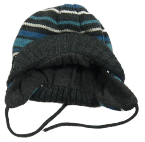Tmavošedo-modro-biela pruhovaná pletená čapica s kšiltem Matalan
