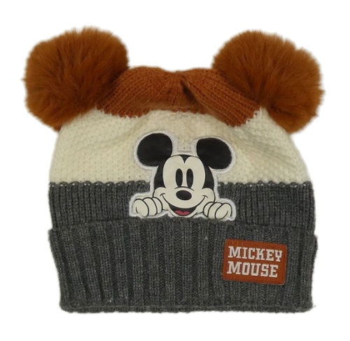 Antracitovo-bielo-hnedá čapica s Mickeym a bambulemi Primark