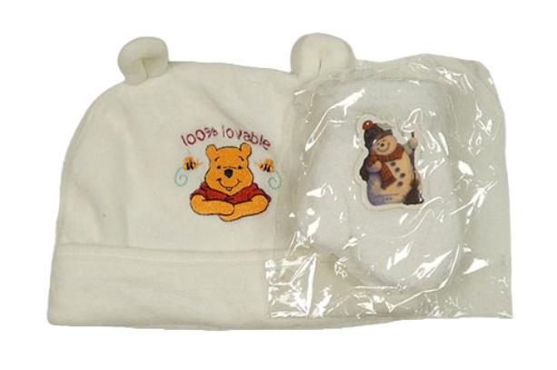 2set - Smotanová zamatová čapica s Púem + bílé chlupaté palcové rukavice so sněhulákem