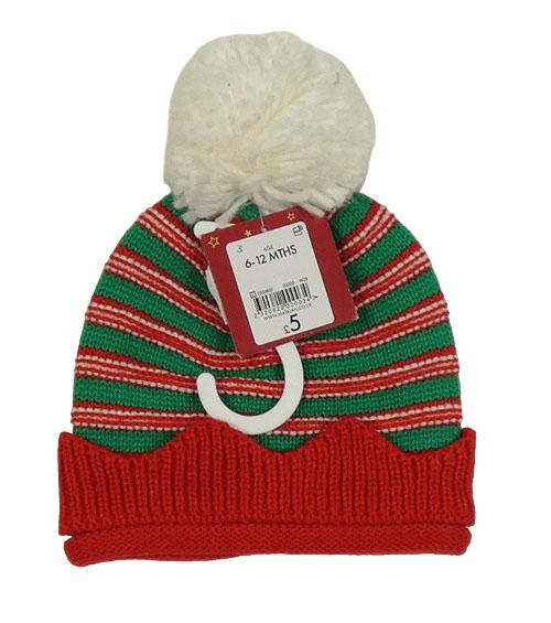 Nové - Červeno-zeleno-biela pruhovaná pletená čapica s brmbolcom Matalan
