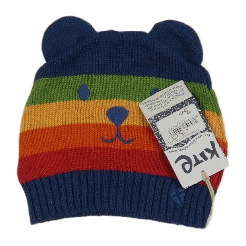 Nové - Tmavomodro-farebná pruhovaná čapica s medvedíkom Kite