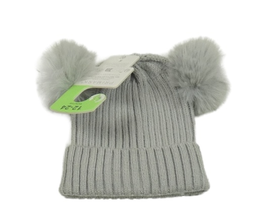 Nové - Sivá rebrovaná pletená čapica s bambulemi Primark