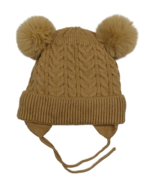 Hnedá vzorovaná úpletová zavazovací čapica s bambulemi noixx