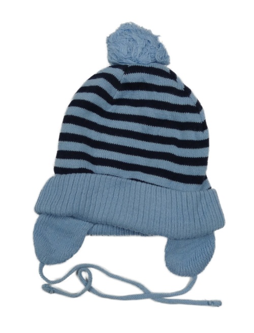 Světlemodro-čierna pruhovaná čapica s brmbolcom Lupilu