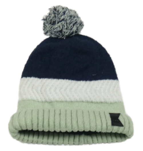 Tmavomodro-bielo-zelená pletená čapica s brmbolcom