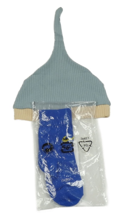Nové - Modrošedo-svetlobéžová rebrovaná čepice + zafírové ponožky