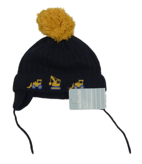 Nové - Tmavomodrá vlnená čapica s bagrami a brmbolcom Jojo Maman Bébé