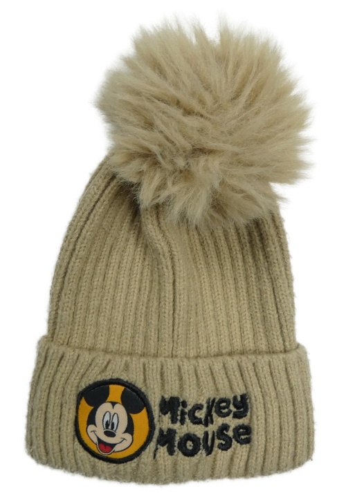 Béžová rebrovaná pletená čapica s Mickey a brmbolcom PRIMARK