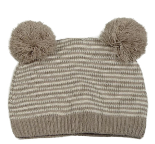 Nové - Světlehnědo-biela pruhovaná čapica s bambulemi Next