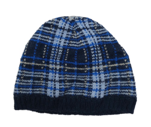Tmavomodro-modrá kockovaná pletená podšitá čapica