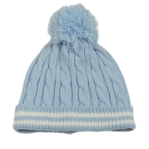 Svetlomodrá čapica s bielymi pruhmi a brmbolcom