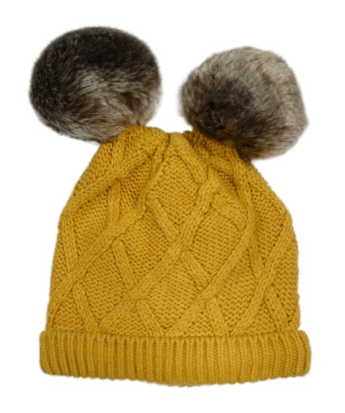 Horčicová pletená podšitá čapica s bambulemi F&F