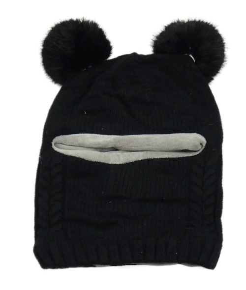 Černá pletená kukla s bambulemi