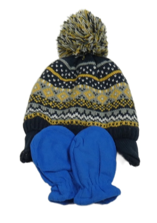 2set - Barevná pletená podšitá ušanka + modré fleecové rukavice George
