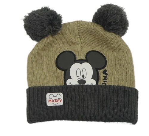 Béžovo-tmavosivá čapica s Mickey a bambulemi PRIMARK