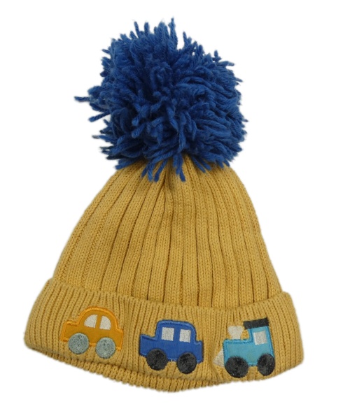 Okrová pletená čapica s autami a modrou brmbolcom Next