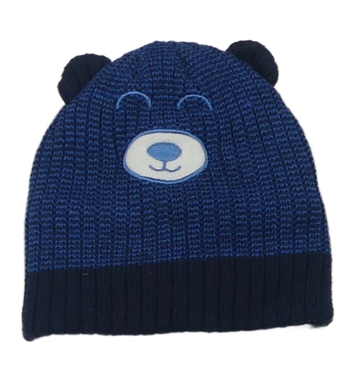 Tmavomodro-modrá melírovaná pletená čapica s medvedíkom Topomini