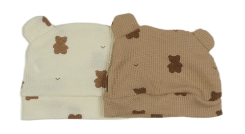2x rebrovaná čapica s medveďmi a oušky - smetanová + hnedá