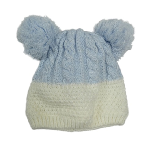 Bielo-modrá pletená podšitá čapica s bambulemi