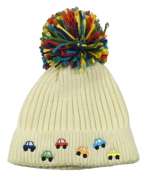 Krémová žebrovaná pletená čepcie s autami a brmbolcom George