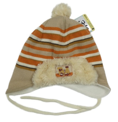 Nové - Béžovo-tehlová pruhovaná pletená podšitá čapica s vlakem