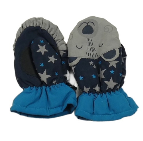 Šedo-tmavomodré šusťákové zimní funkční palcové rukavice s ňufáčikom