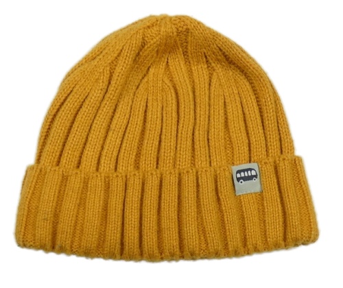 Horčicová rebrovaná pletená čapica s autobusom Topomini