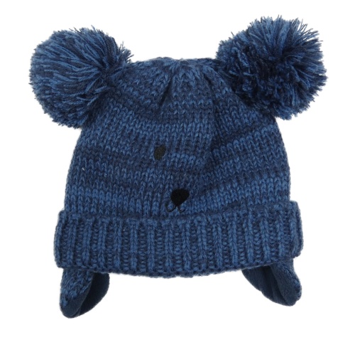 Tmavomodrá melírovaná pletená čapica s ňufáčikom a bambulemi F&F