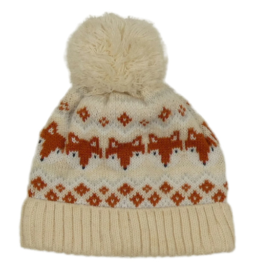 Béžová pletená podšitá čapica s liškami a brmbolcom