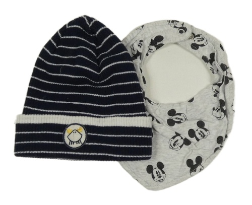 2set - Tmavomodro-bílá pruhovaná čepice + šedý slinták s Mickeym
