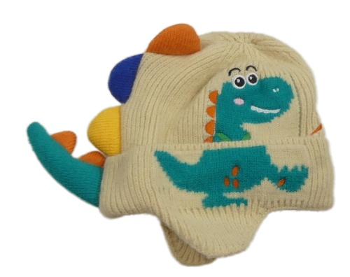 Smotanová pletená podšitá čapica s dinem a ostny a ocasem