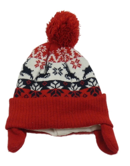Červeno-bielo-čierna vzrovaná čapica s brmbolcom so cute