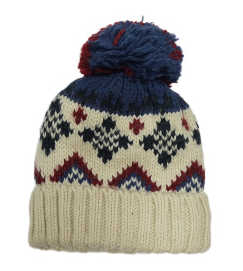 Béžovo-tmavomodro-vínová vzorovaná pletená čapica s brmbolcom Next
