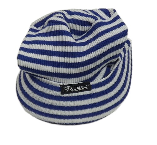 Tmavomodro-biela pruhovaná čapica s kšiltem