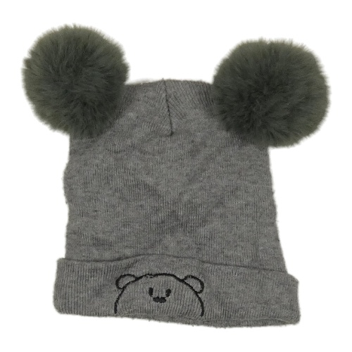 Sivá melírovaná čapica s medvěďom a bambulemi