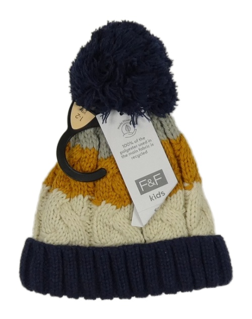Nové - Tmavomodro-sivo-okrová pletená čapica s brmbolcom F&F