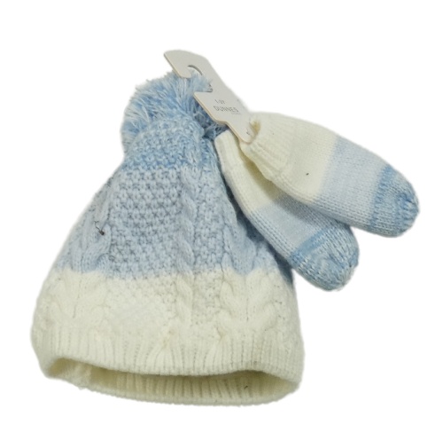 Nové - 2set - Světlemodro-smotanová pletená čapica s bambulí + rukavice Dunnes